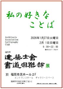 その他 販売中 FCH 市民ギャラリー1月 建築士会書道倶楽部展「わたしの好きなことば」 開催日時2026年1月27日(火)~2月1日(日)開催場所福岡市民ホール2F エントランスホール(西ゲート側)ギャラリースペース主催福岡市民ホール主催 詳細はこちら
